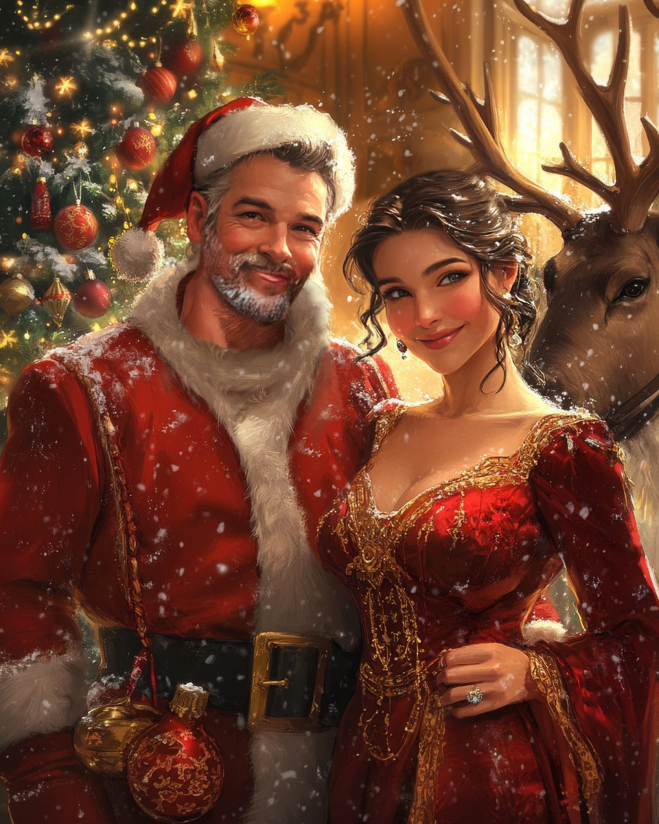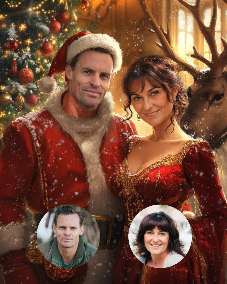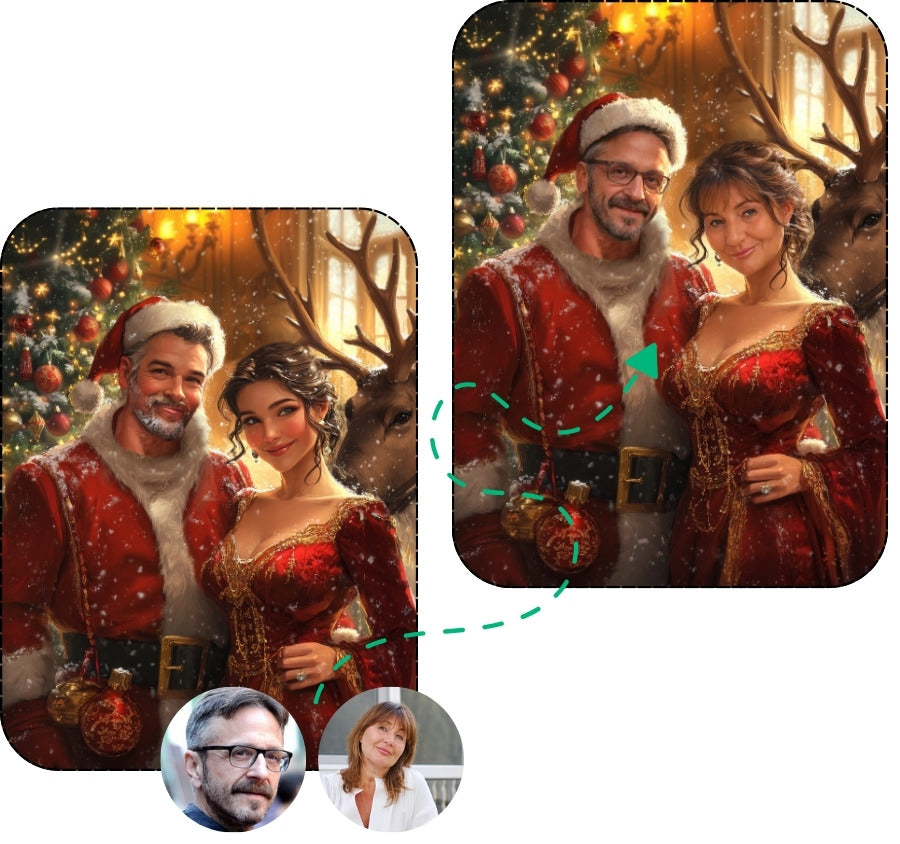 Upload dine fotos og klik på knappen "Forhåndsvis portrætter" længere oppe på siden for at se jeres juleforvandling.