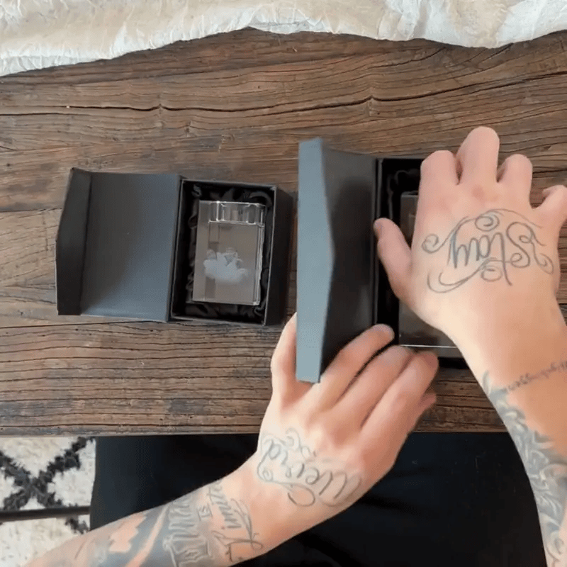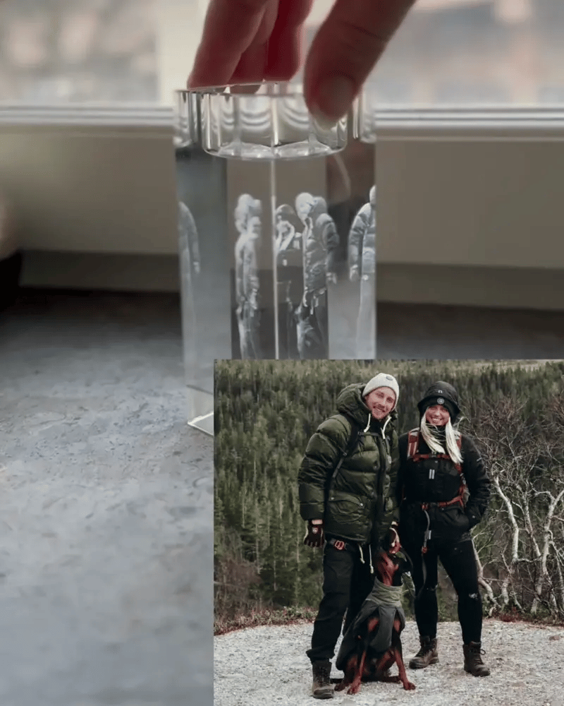 Ved hjælp af avanceret lasergraveringsteknologi forvandles dit valgte foto til en dyb og detaljeret 3D-gravering i det gennemsigtige krystalmateriale.
